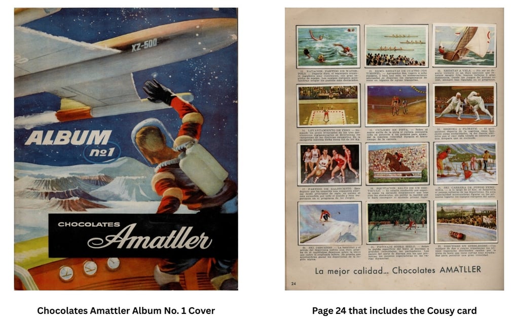 Although it’s not necessarily difficult to find examples of “Album No 1” by Chocolates Amatller, pinpointing the exact date of release has proven to be more challenging. It’s often referred to as a “1950s” release, but Spanish collectors have told me it likely dates to 1956-57. I’m sure the exact date will be confirmed with more research. I have found the original photographs of two other illustrations that also both date to 1954. The Olympics section mentions the next Olympics will be held in 1960 in Rome, so the earliest this album would have been published is late 1956. If it indeed 1957, it would coincide with his 1957 Topps card, often considered his rookie card, to those that don’t see the 1951 Berk Ross as his true RC. Either way, it’s one of precious few cards issued during Cousy’s prime.